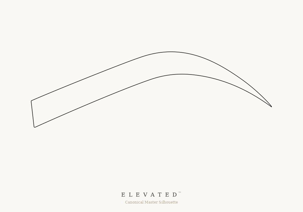 Density in the Elevated model supports structure. The body zone carries increased density to anchor the lift visually. The arch zone maintains sufficient weight to hold the apex position. The tail resolves with controlled reduction — not the gradual fade of Classic, but a more deliberate termination that preserves the architectural intent.