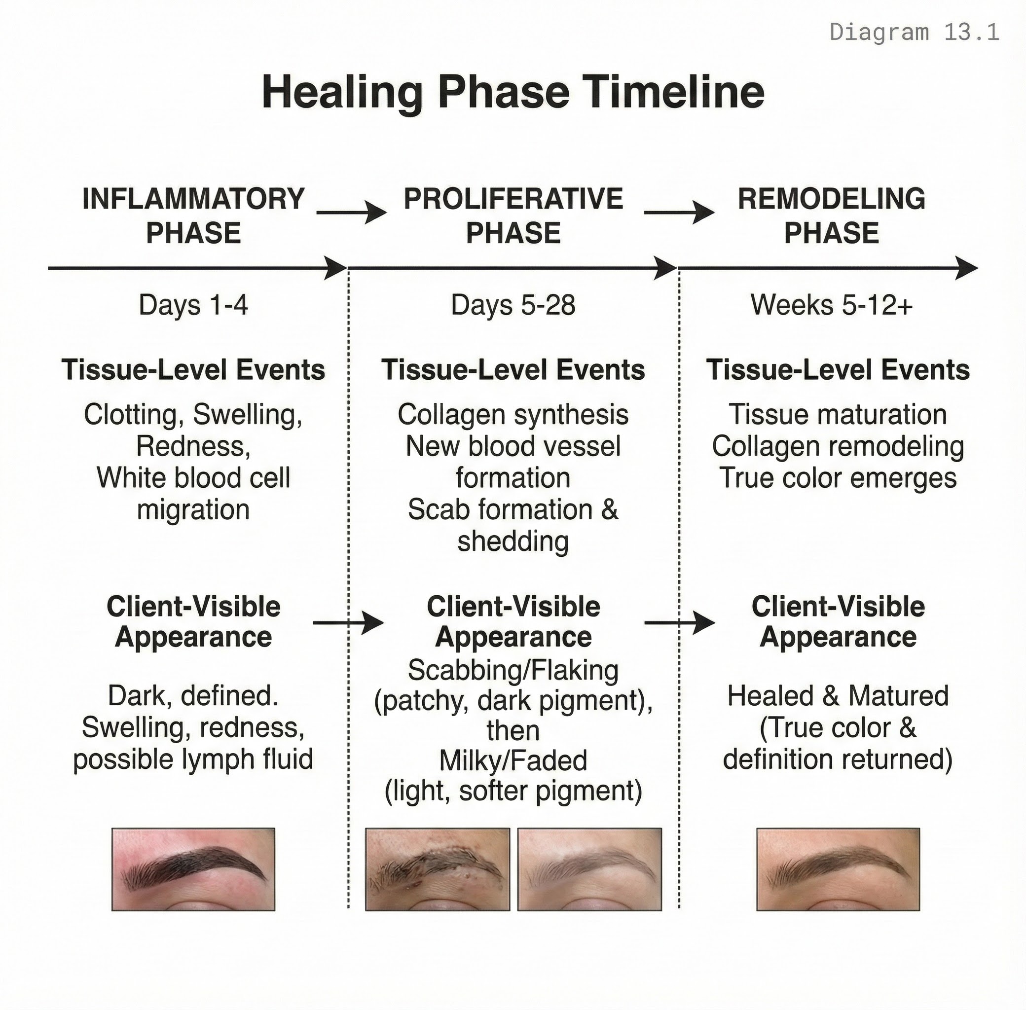 The procedure is not the product. The healed result is the product.Everything that happens between the final stroke and the six-week follow-up determines whether your work succeeds or fails. Understanding and managing these variables is what separates practitioners who produce reliably excellent healed results from those who produce excellent fresh results that disappoint at follow-up.
