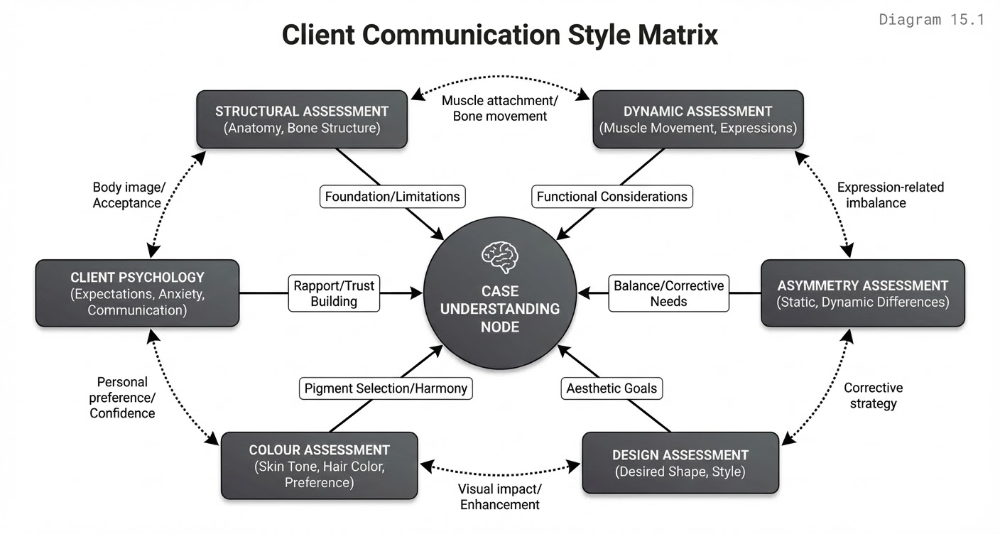 No two clients present the same combination of variables.A thin-skinned client with high arches, oily T-zone, previous bad PMU, unrealistic expectations from Instagram, and a time constraint is not a textbook case. She is a specific constellation of structural, technical, and psychological factors that requires a specific strategy. The ability to formulate that strategy quickly and execute it effectively is what this chapter develops.